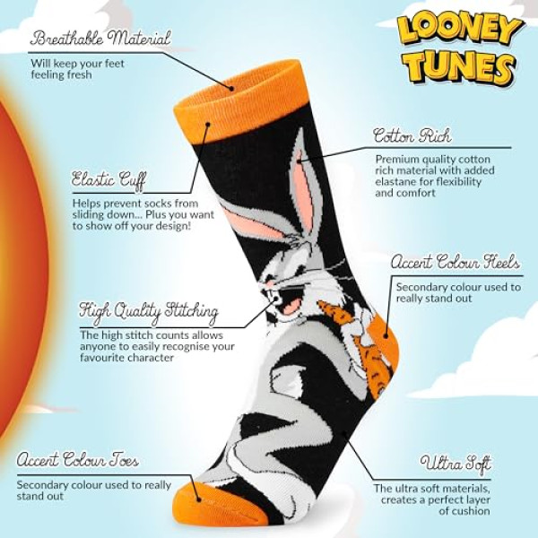 Description pour Chaussettes Looney Tunes - Pack 5 Paires - Collection Personnages