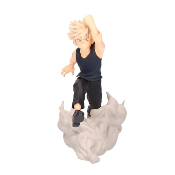 Mesurant environ 12 cm de hauteur, Bakugo est représenté dans une pose dynamique qui reflète parfaitement son caractère combatif et déterminé. Chaque détail a été soigneusement travaillé pour retranscrire fidèlement le design du personnage tel qu'on le connaît dans My Hero Academia.