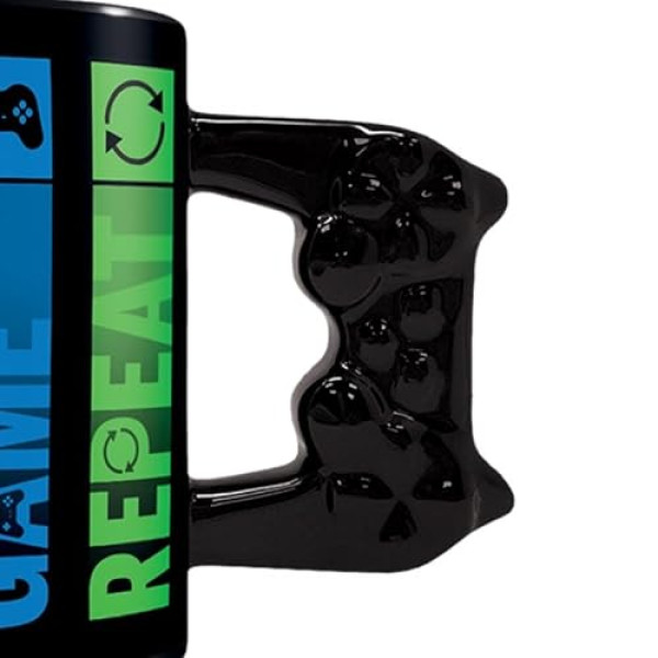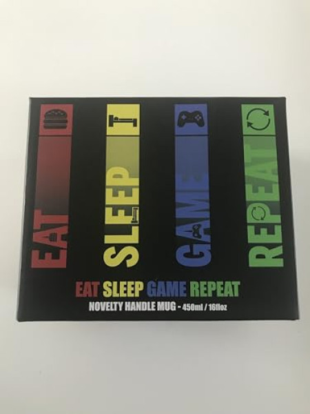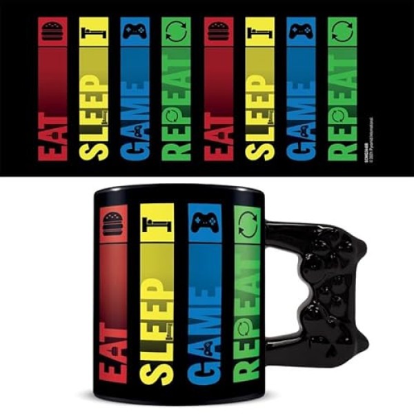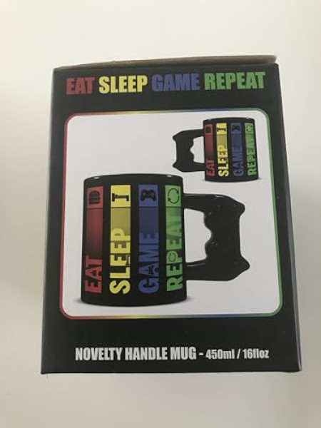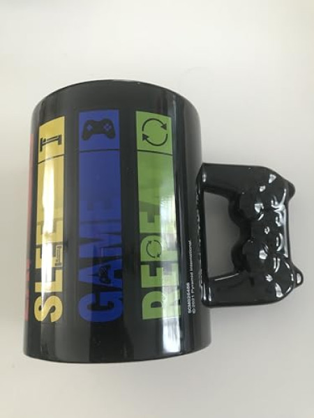 Prenez une pause entre deux sessions de jeu avec ce mug geek qui comprend parfaitement votre style de vie ! La tasse 3D 'Eat, Sleep, Game, Repeat' est l'accessoire ultime pour tout gamer qui se respecte.